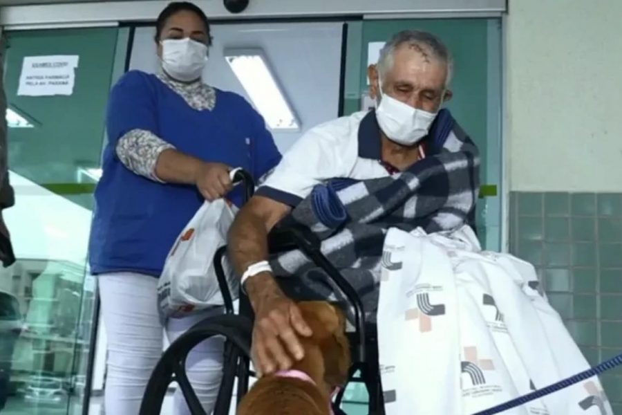 Na manhã de sábado (19), o aposentado Aparecido de Fátima da Silva recebeu alta e pôde voltar para casa. E quem estava a sua espera na saída do hospital era Lessie, a cadelinha fiel companheira.