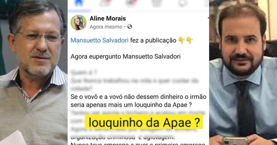 O caso foi registrado em uma postagem de um perfil denominado Aline Morais que, para atacar a honra de Rodrigo Salvadori, insinuou de maneira preconceituosa que o irmão de Rodrigo seria um “louquinho da APAE”.