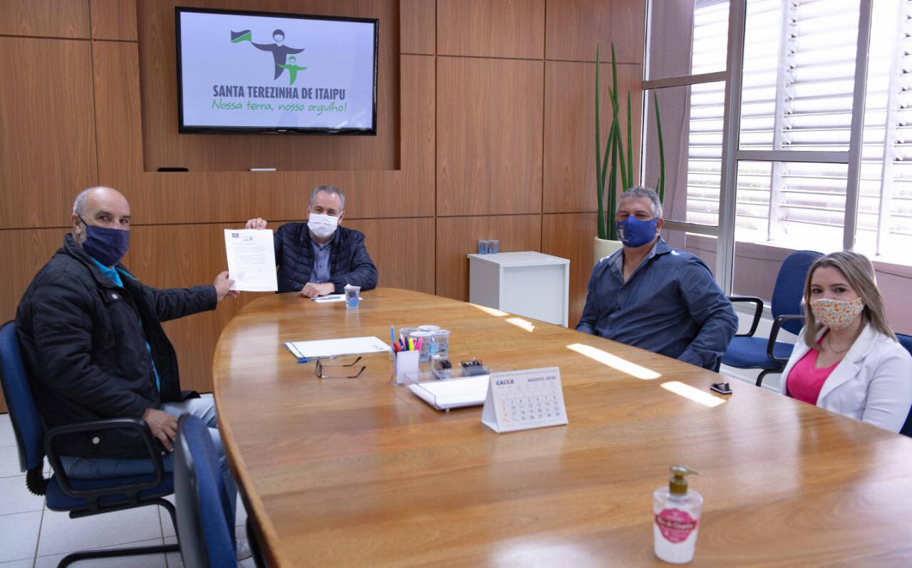 O prefeito Claudio Eberhard (PSDB) recebeu nesta quarta-feira (27) do chefe do Polo Regional de Esportes, Roberto Costa, o termo de doação de materiais esportivos do Programa Educação Mais Esporte,Transforma Paraná. O programa estadual atenderá 160 crianças e adolescentes, após retomada das atividades desenvolvidas pela Secretaria de Esportes e Lazer, nas modalidades de futsal e basquetebol. O secretário municipal de Esportes, Rêmulo Ramalho, acompanhou o encontro.