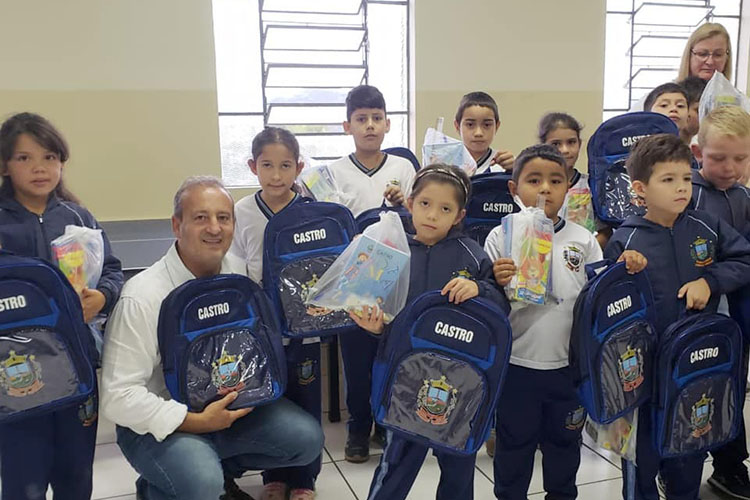 Moacyr Fadel entrega mochilas e material escolas para estudantes da rede pública