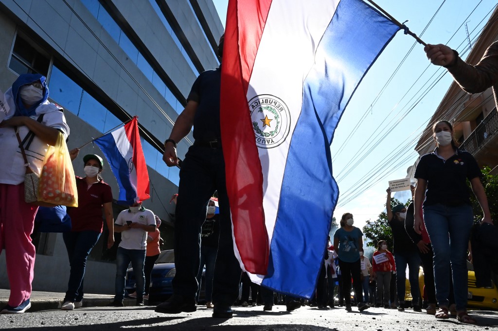 Trabalhadores e comerciantes paraguaios fazem manifestação pedindo a reabertura da Ponte da Amizade