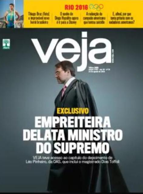 A explosiva capa da Veja 19/08/2016 A Veja deste final de semana traz uma reportagem exclusiva da delação do empreiteiro Leo Pinheiro, da OAS, que delatou o ministro do STF, Dias Toffoli. Compartilhe isso: Clique para compartilhar no Facebook(abre em nova janela) Facebook Clique para compartilhar no X(abre em nova janela) 18+ Clique para compartilhar no WhatsApp(abre em nova janela) WhatsApp Relacionado