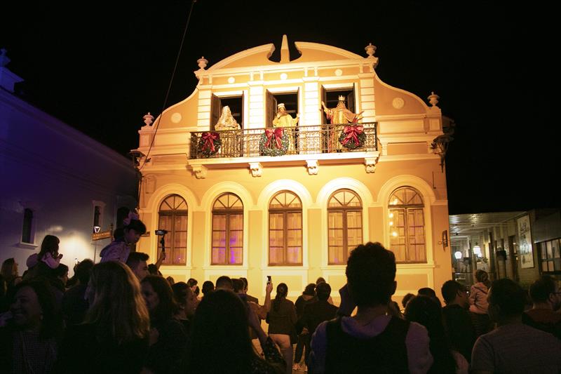 O público poderá acompanhar o trajeto da imagem de quase cinco metros de altura até o Largo da Ordem, onde um grande coral de anjos entoará uma canção de Natal. Ao mesmo tempo, as luzes da árvore de Natal no interior do Memorial de Curitiba serão acesas. A encenação culmina com a formação do presépio no palco do Largo da Ordem, acompanhada pela Oração de São Francisco e o canto de Aleluia pelos grupos corais Brasileirinho e Brasileiro.