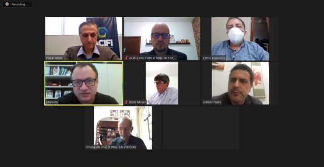 Participaram da videoconferência, além do Prefeito Chico Brasileiro e de Faisal Ismail, o presidente interino do Sindilojas, Itacir Mayer; o presidente do Conselho Superior da Acifi, Walter Venson; e o secretário de Turismo, Indústria, Comércio e Projetos Estratégicos, Gilmar Piolla. Completaram a presença pela Acifi o diretor-executivo, Dimas Bragagnolo, e o advogado Marcelo Brito.