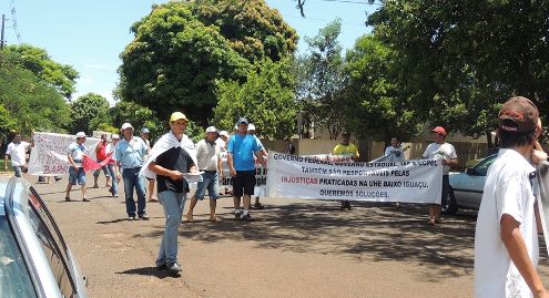 Um grupo de agricultores do Sudoeste do Paraná, que terá suas terras invadidas pelo reservatório da Usina Baixo Iguaçu, protesta neste momento pelas ruas de Capanema. Agora pouco eles se concentraram em frente à Câmara de Vereadores, de onde saíram em passeata até a prefeitura da cidade.