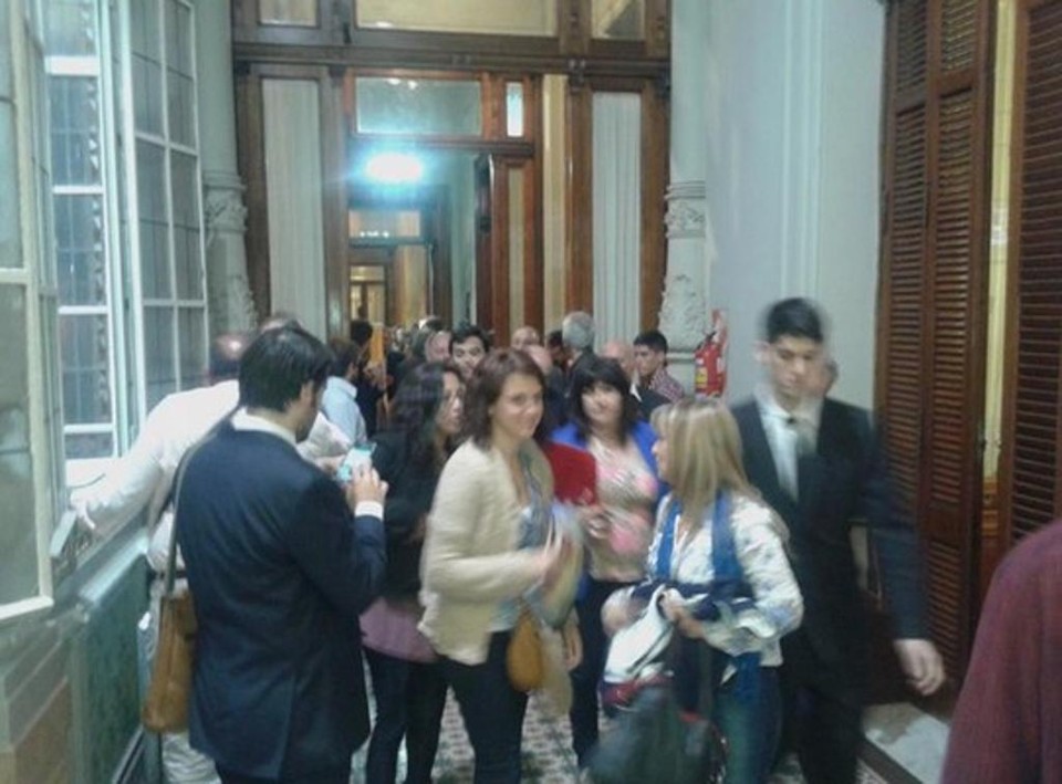 O senador argentino Pino Solanas postou em suas redes sociais uma imagem que mostra o momento da saída dos participantes do evento do salão. “Ameaça de bomba no Senado nos obriga a deixar os salões quanto discutíamos sobre alternativas ao extrativismo”. Em outra postagem, ele acrescenta: “Parece que refletir sobre este tema chateia algumas pessoas”.