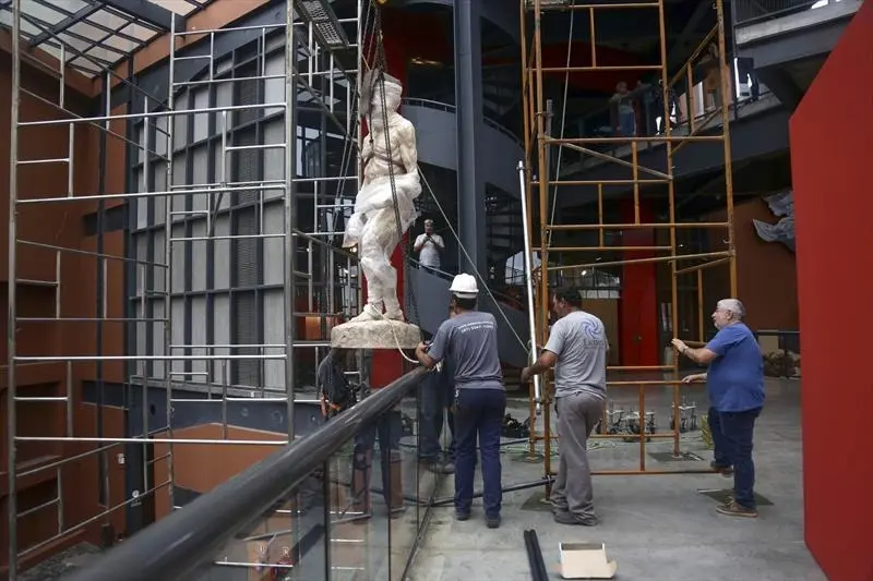 Uma escultura de 2,70 metros de altura foi içada dentro do Memorial de Curitiba na tarde desta segunda-feira (27/3). Essa será um dos destaques da exposição Curitiba, Capital do Paranismo.