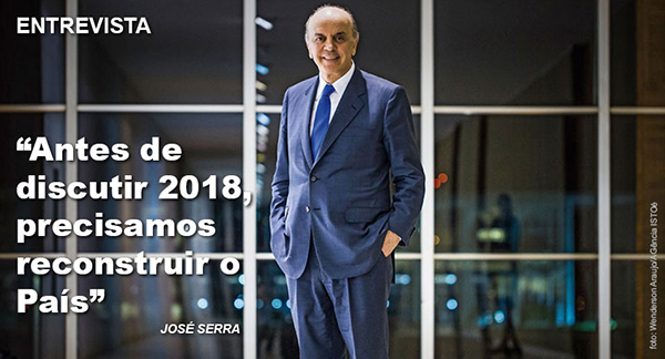 O ministro das Relações Exteriores, José Serra, não esconde que deseja disputar as eleições presidenciais em 2018, mas considera que este não é o momento para discutir os critérios que o PSDB deve adotar para a escolha de um nome. Para ele, o “grande desafio agora é ajudar o governo Temer na reconstrução nacional”.