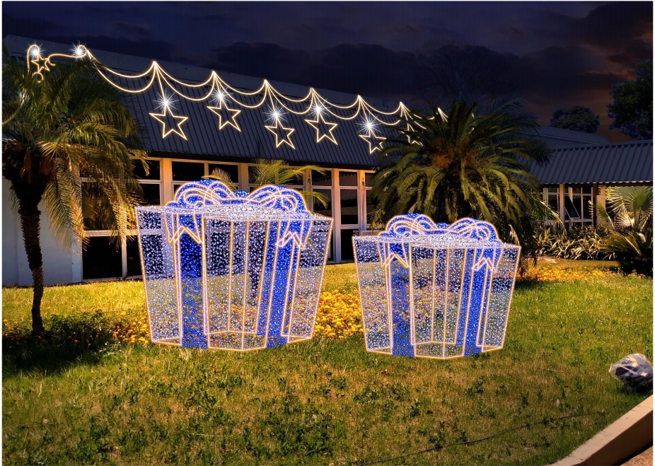 São muitas luzes que iluminam bonecos, bolas coloridas e até um letreiro gigante com o cumprimento clássico do Papai Noel (ho, ho, ho). O Bom Velhinho, é claro, está ali também, representado por um boneco, para lembrar que ele está sempre presente. A decoração permanece montada até 5 de janeiro.