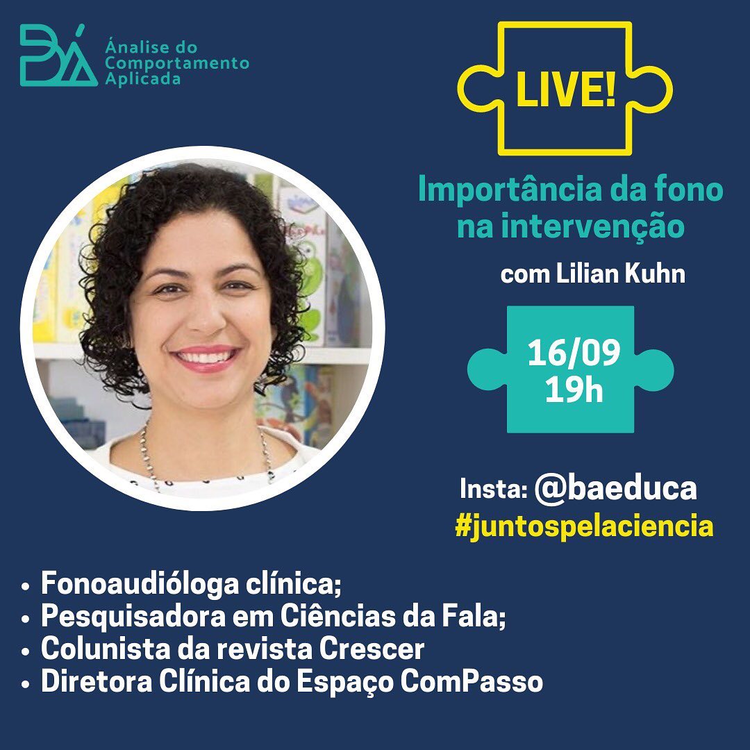 A live que começa às 19h, conta com a participação de Lilian Kuhn, Fonoaudióloga clínica e pesquisadora em ciências da fala.