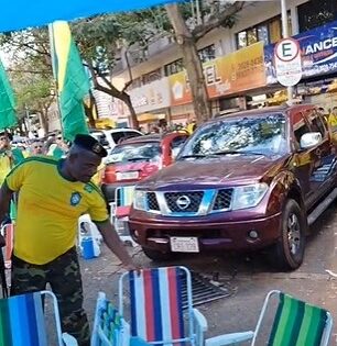 Eram umas 20 pessoas em cima do meu carro gritando comigo e me xingando, eu comecei a gritar por ajuda, e um dos caras de verde e amarelo veio, invadiu meu carro e tentou pegar a chave. Eu segurei para não deixar que ele levasse.