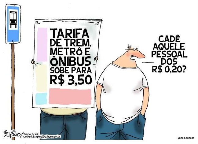 Cadê aquele pessoal dos R$ 0,20? – por Alpino 07/01/2015 Compartilhe isso: Clique para compartilhar no Facebook(abre em nova janela) Facebook Clique para compartilhar no X(abre em nova janela) 18+ Clique para compartilhar no WhatsApp(abre em nova janela) WhatsApp Relacionado