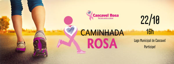 A associação Cascavel Rosa promove neste sábado (22), às 16h, mais uma edição da Caminhada Rosa no Lago Municipal de Cascavel. Outubro é o mês em que no mundo todo se intensificam as ações e discussões acerca do câncer e as voluntárias da cidade organizaram uma série de ações que incentivam à prevenção e o combate à doença. Uma delas é a caminhada, que é aberta às mulheres, às famílias e a todos que desejarem comparecer.