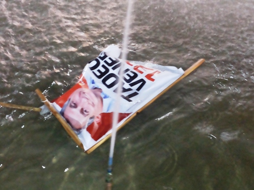O PT está vivendo o pior momento desde que o ex-presidente Lula assumiu a presidência em 2003. Que o diga o deputado estadual Tadeu Veneri. Ele vem fazendo uma campanha agressiva aqui em Curitiba. Placas divulgando a candidatura dele estão espalhadas na maioria dos bairros da cidade. Sem dúvida é a eleição que Veneri mais gasta. O que vem irritando muitos eleitores que não gostam das posições das propagandas colocadas na Rua das Flores. Um grupo de esquerdistas radicais pegou uma delas e atirou na fonte que fica entre as Ruas Marechal Floriano e a Dr. Muricy. Comemoraram a arte gritando palavras de ordens contra o PT.