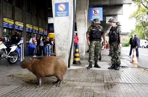 Uma capivara deu o ar da graça na rodoferroviária de Curitiba nesta madrugada. Diferente da maioria dos passageiros, que desembarcam na rodoviária de ônibus, suspeita-se que o roedor tenha chegado ao local pelo Rio Belém.