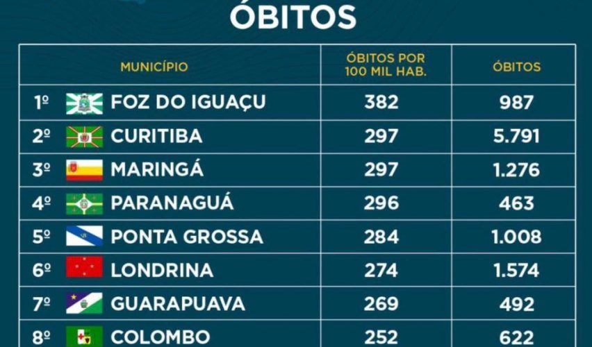Cascavel tem menor número de óbitos-covid entre as 10 grandes cidades do Paraná