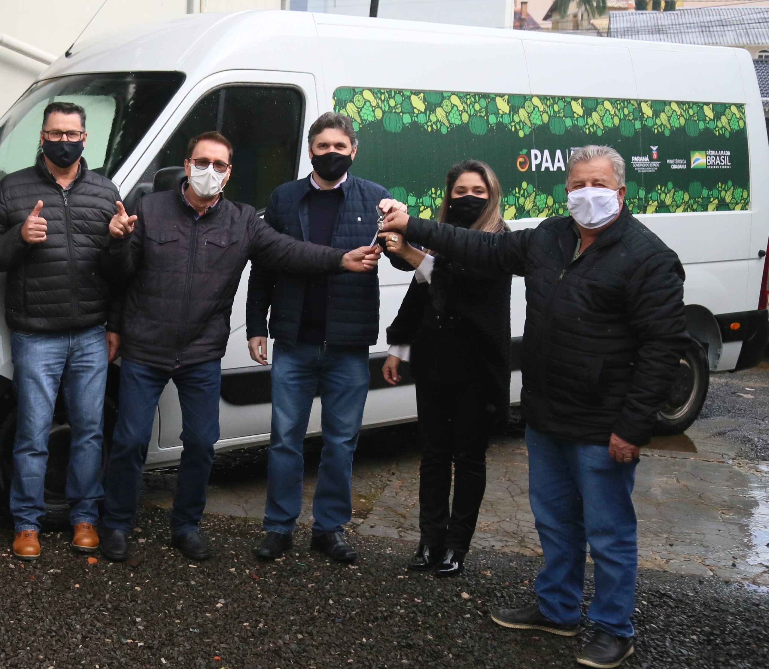 Nesta segunda-feira (29) a Secretaria Estadual de Agricultura entregou uma Van e vários equipamentos para a Central de Distribuição da Merenda Escolar de Francisco Beltrão. Antoninho Fontanella, representante da direção local da SEAB, fez a entrega ao prefeito Cleber Fontana e ao vice-prefeito Antonio Pedron, acompanhados da secretária municipal de Educação, Mariah Ivonete Silva e do secretário de Agricultura, Claudimar de Carli.
