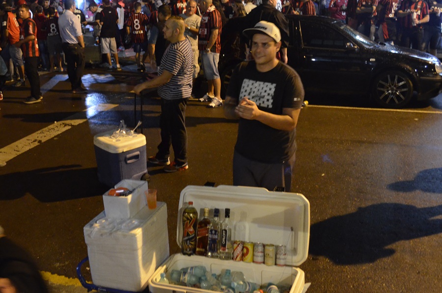 Um dos argumentos dos que são favoráveis à venda é de que, fora dos estádios, os torcedores bebem da mesma forma e com um agravante: muitos ambulantes vendem bebidas mais fortes do que a cerveja, como whisky, vodka e pinga sem qualquer fiscalização sanitária ou policial. Fotos enviadas ao blog, registadas em um jogo recente do Atlético Paranaense, confirmam: