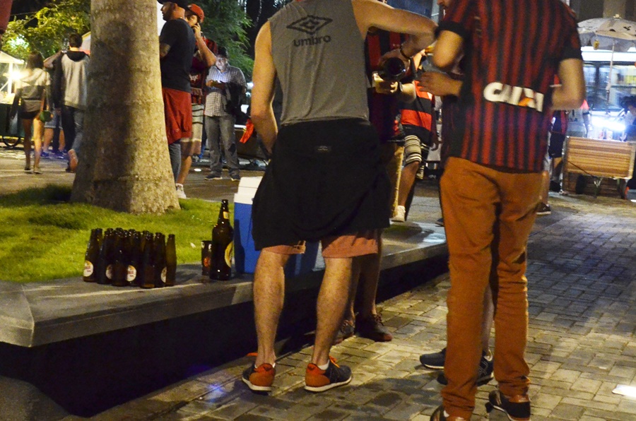 Da mesma forma, as fotos do entorno da Arena mostram que os torcedores não deixam de beber fora: