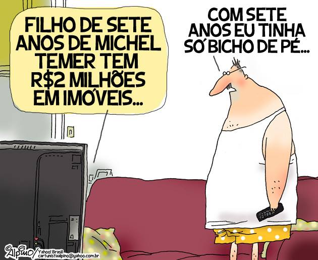 Charge do dia 02/06/2016 A charge do dia é do Alpino. Compartilhe isso: Clique para compartilhar no Facebook(abre em nova janela) Facebook Clique para compartilhar no X(abre em nova janela) 18+ Clique para compartilhar no WhatsApp(abre em nova janela) WhatsApp Relacionado