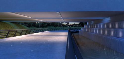 A passarela em concreto será feita aproveitando a construção de um lago para contenção de cheias. A passarela ficará 70 centímetros acima do lago, terá 6 metros de largura por 2,80 metros de comprimento entre os dois lados do parque. A caminhada ou corrida poderá ser feita de forma contínua pela galeria subterrânea, sem parar para atravessar a rua.