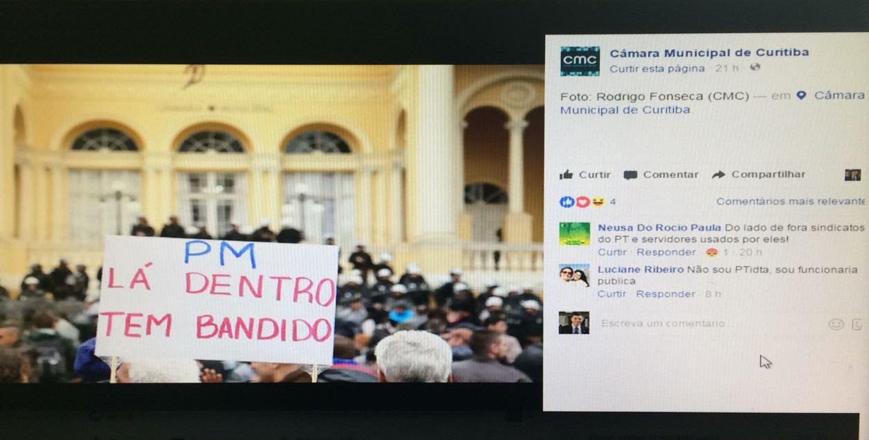 O ativismo político dos jornalistas da Secretaria de Comunicação da Câmara Municipal de Curitiba está preocupando a maioria dos vereadores. Além de divulgar fotos onde afirmam que a Polícia Militar agrediu os manifestantes que invadiram legislativo, há postagens no facebook hostis à PM do Paraná. “A comunicação da Câmara não pode tomar partido e apoiar ostensivamente os invasores e ficar jogando contra o legislativo. Isto está muito errado”, disse um vereador.