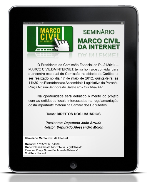 Convite para o seminário do Marco Civil da Internet, dia 17 na Assembleia do PR