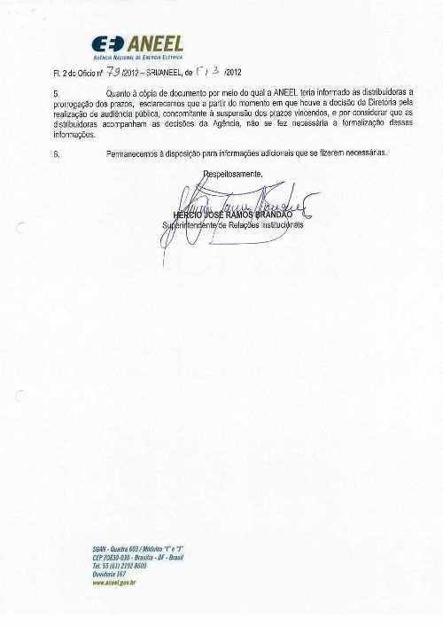 Em relação ao comunicado às distribuidoras sobre a prorrogação dos prazos, a Aneel fez o seguinte esclarecimento: “a partir do momento em que houve a decisão da Diretoria pela realização de audiência pública, concomitante à suspensão dos prazos vincendos, e por considerar que as distribuidoras acompanham as decisões da Agência, não se fez necessária à formalização dessas informações”.