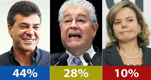 Em terceiro lugar, permanece a senadora Gleisi Hoffmann (PT), ex-ministra da Casa Civil do governo Dilma Rousseff (PT). Gleisi aparece com 10%, bem abaixo da expectativa petista de levá-lo ao segundo turno. Na pesquisa de agosto, antes do início do horário eleitoral, ela tinha 11%. Gleisi, porém, tem alta rejeição –19% dos eleitores não votariam nela de jeito nenhum, contra 27% de Requião, o líder, e 16% de Richa.