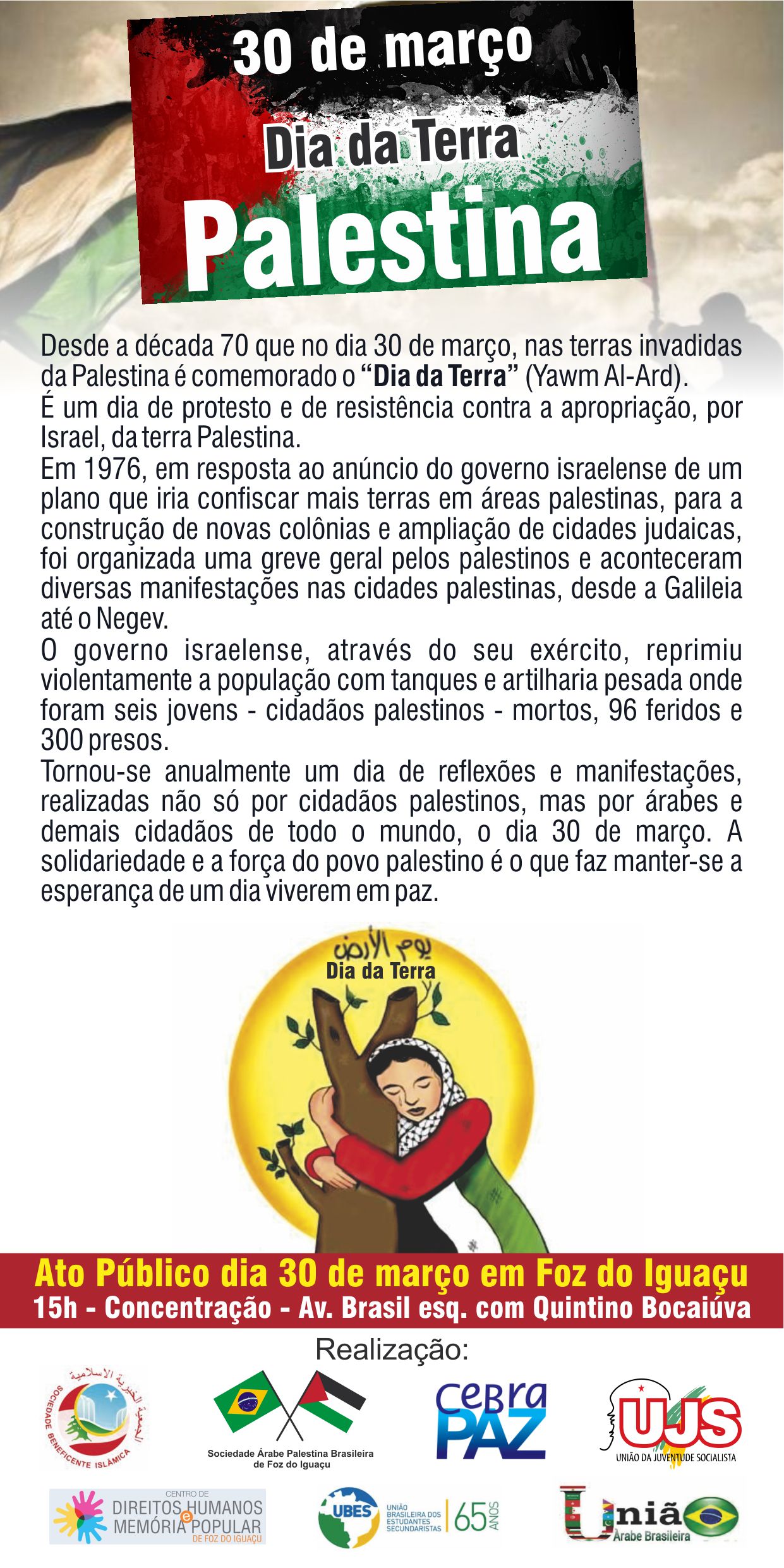A Sociedade Árabe-Palestina de Foz do Iguaçu convida para o “Dia Internacional da Terra Palestina”.