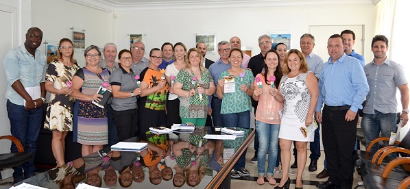 Ao final da reunião, todas as secretárias e diretoras foram homenageadas com uma rosa pelo Dia Internacional da Mulher (08 de março).