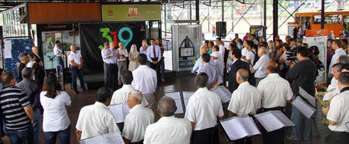 A ordem de serviço para o início das obras de pavimentação das canaletas do Ligeirão Norte foi dada no Terminal Santa Cândida e teve a assinatura do presidente da Urbs, Marcos Isfer, e do secretário Municipal de Obras Públicas, Mário Tookuni.