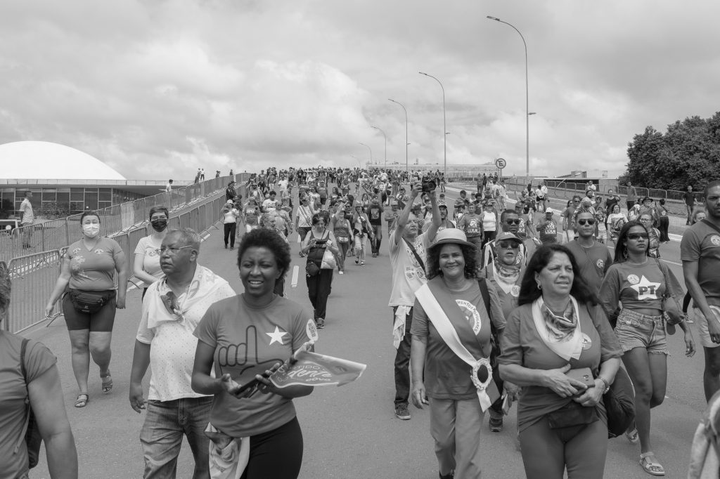 Às 10h, depois de enfrentar a fila de revista para ter acesso à praça, eu estava lá dentro, cercado por uma multidão de aproximadamente 40 mil pessoas, o número máximo permitido no local. Muitas pessoas gritavam seus lugares de origem, a cidade e o estado, como se quisessem indicar que tinham vindo de longe, às vezes de muito longe. Outras exclamavam em coro: “Lula, guerreiro do povo brasileiro”. Também cantavam, dançavam, se abraçavam. Estavam todos muito alegres, sorrindo sem parar: era impossível fotografar alguém triste na Praça dos Três Poderes.