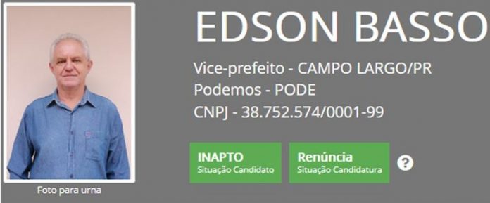 O candidato a vice da chapa reunindo o PSC / PODE / PSB / PSDB / REPUBLICANOS / PV, a coligação “Gente em Primeiro Lugar”, Edson Basso (Pode) desistiu da dobradinha com Udo Schmidt (PSDB), em Campo Largo, cidade da Região Metropolitana de Curitiba.