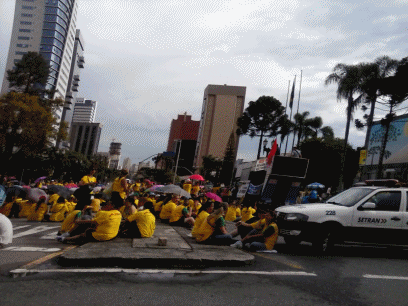 A chuva seguida de um intenso calor não intimidou os educadores municipais de Curitiba que, em greve, protestaram o dia inteiro nesta quarta-feira, 19, em frente à prefeitura, exigindo do prefeito Gustavo Fruet (PDT) melhorias nas condições de trabalho e equiparação de salários. A greve dos educadores, que cuidam das crianças nas creches, se soma às paralisações do professores e do trabalhadores da coleta de lixo em Curitiba. E vem mais por aí: a Guarda Municipal já anunciou paralisação para amanhã (quinta-feira, 20).