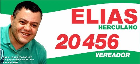 Da série, candidatos amigos do Boca: Elias Herculano, candidato a vereador em Foz do Iguaçu, pelo PSC, sob o número 20.456. Veja o recado do Elias: Olá amigos e amigas. Estou candidato a vereador. Como vou fazer uma campanha com custo mínimo, pois campanha não pode ser confundida com investimento, vou usar este espaço para informar as pessoas conhecidas e que estão decidindo entre os 209 candidatos. Tenho formação profissional em Contabilidade (CNEC), Letras (UNIOESTE), Jornalismo (UDC). Sou especialista em Gestão de Cidades (UDC), Contabilidade e Controladoria (ABRASCE), Gestão de Pessoas, MKT e Finanças (UDC). Curso o 4o. ano de Direito na UNIOESTE e creio estar preparado para ser um vereador capacitado para a função.