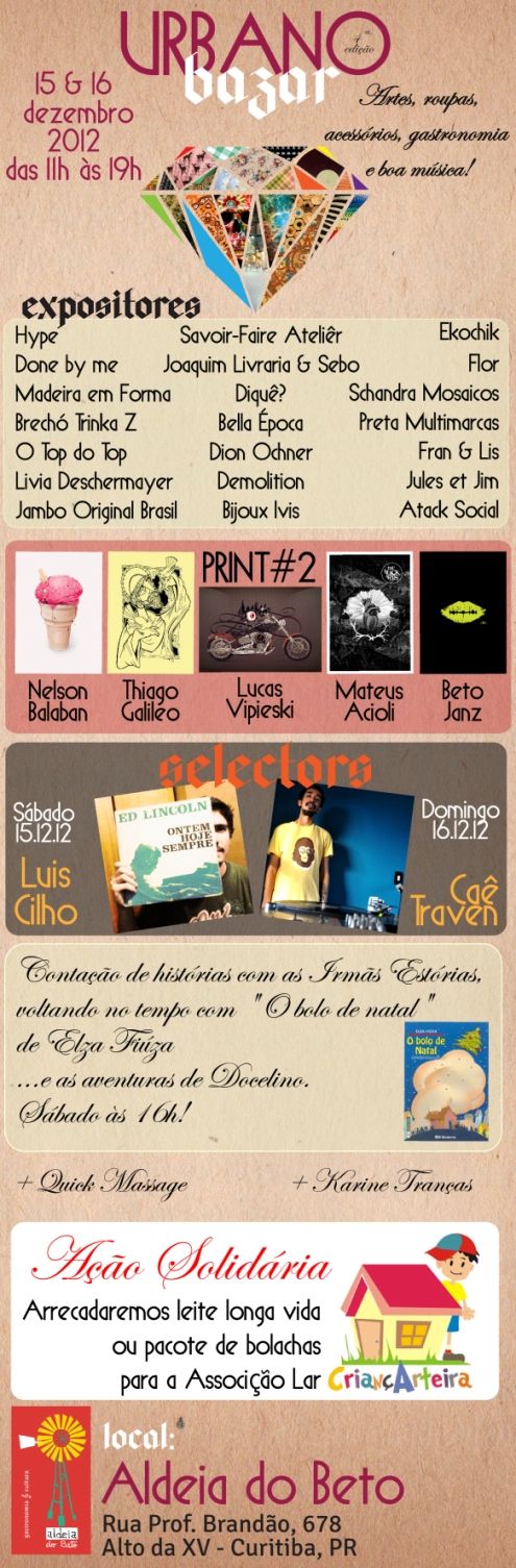 Dias 15 e 16 (sábado e domingo), na Aldeia do Beto, na Rua Professor Brandão, 678, no Alto da XV.