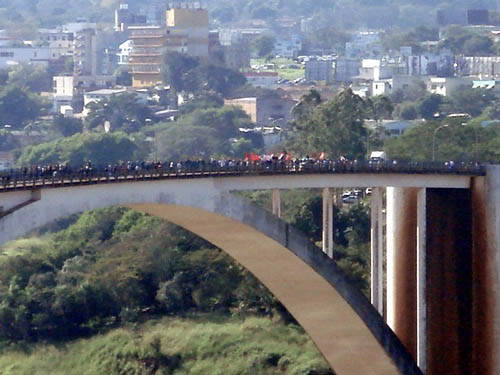 A Ponte da Amizade (principal ligação do Brasil com o Paraguai) em Foz do Iguaçu encontra-se fechada neste momento para trânsito de veículos.