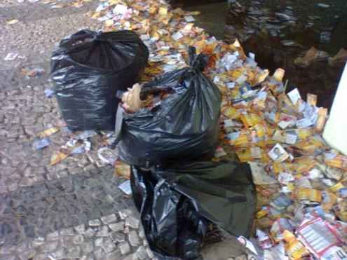 Além do mais, quatro sacos plásticos cheios de propaganda de vários candidatos a vereador também foram depositados. Em seguida saíram num veículo vermelho. Era por volta das 7h20 desta terça-feira (9). A ação das mulheres foi vista e registrada por assessores que chegavam no momento. Fotos identificam a placa do carro que possui as letras AKS, informa a Rede Sul de Notícias.