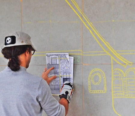 O artistas estão trabalhando no local, ao lado do Shopping Catuai, todas as manhãs. Nesta quarta-feira, começa a aplicação de cores na base em massa acrílica que foi montada numa parede de porcelanato para servir como tela para a pintura.