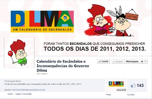 A oposição contra-ataca à central de operação do PT nas redes sociais e resolveu criar duas páginas – Twitter e Facebook – com os escândalos do governo Dilma. O calendário será lançado hoje à tarde em Brasília no site da juventude do PSDB e terá presença de Aecio Neves, pré-candidato tucano à presidência. Quem quiser acessar as páginas: facebook.com/escandalosdogovernodilma e twitter.com/escandalosdilma.