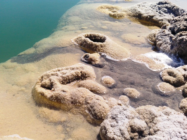 Próximo às margens do lago, formações semelhantes a vulcões miniaturas revelam imagens delicadas, que, num primeiro momento, escondem a dureza do sal enrijecido pelo tempo.