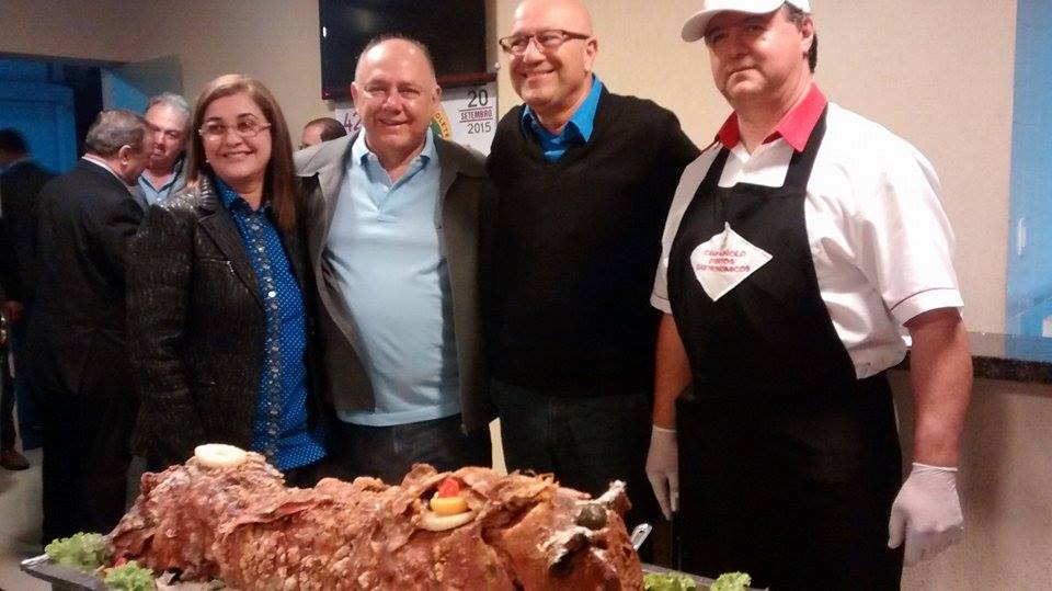 Nas fotos, Beto Richa ao lado de Schiavinato, a deputada Maria Victória (PP) e o líder do governo na Assembleia Legislativa, Luiz Claudio Romanelli (PMDB), junto com um dos mestre-cuca oficial do evento. Este ano, a previsão é assar 400 porcos no rolete durante o evento.