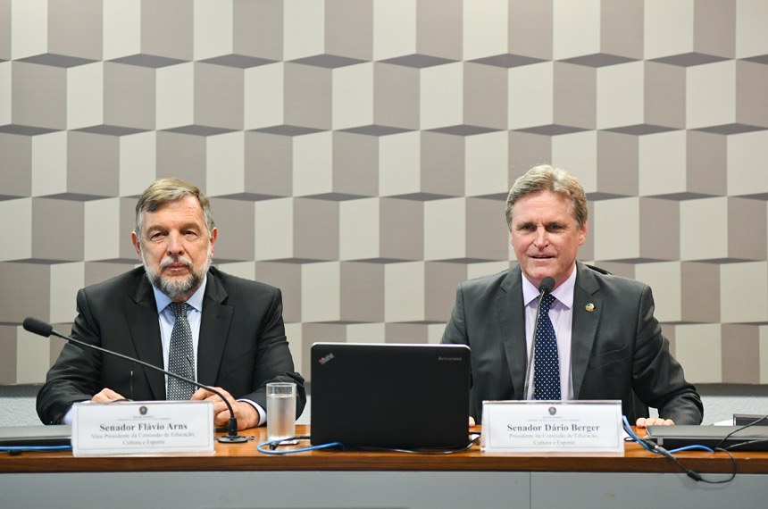 Candidatos únicos à presidência e vice-presidência da Comissão de Educação, Cultura e Esporte (CE), os senadores Dário Berger (MDB-SC) e Flávio Arns (Rede-PR) foram escolhidos nesta quarta-feira (13) para exercerem os cargos nos próximos dois anos. A comissão tem 27 membros titulares e 27 suplentes. Entre as atribuições da comissão estão o exame de proposições sobre desportos, instituições educativas e culturais, diretrizes e bases da educação nacional, diversão e espetáculos públicos, datas comemorativas e homenagens cívicas.