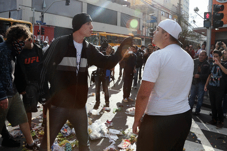 Uma estação-tubo também foi vandalizada. O protesto de cerca de 300 pessoas gerou corre-corre entre pessoas que circulavam pela região e fez com que comerciantes fechassem as portas mais cedo.