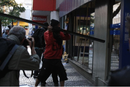 Grupo depredou agência HSBC no Centro de Curitiba. Fotos de Henry Milleo/Gazeta do Povo.