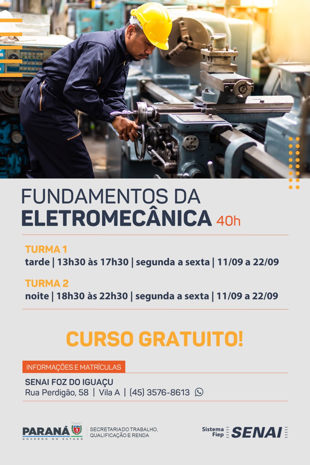 A Agência do Trabalhador da Prefeitura em parceria com o Sesi Senai de Foz do Iguaçu promovem, de 11 a 22 de setembro, um curso gratuito sobre Fundamentos da Eletromecânica.