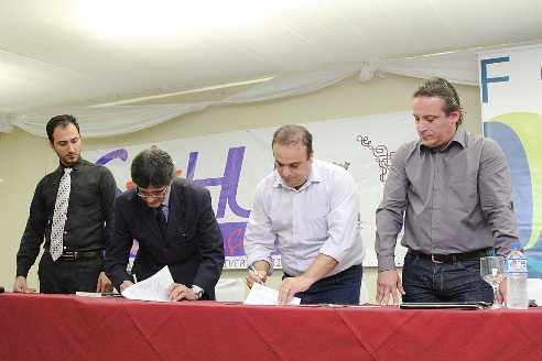 O prefeito de Foz do Iguaçu, Reni Pereira (PSB) e o reitor da Unila, Josué Passos, assinaram na noite de sexta-feira, 21, o termo de cooperação que garante aos estudantes e professores do curso de medicina da universidade, o o uso de equipamentos e de unidades básicas de saúde da cidade. Com a assinatura, Reni e Passos fizeram o anúncio oficial do curso em Foz. Serão 60 vagas para brasileiros e latinoamericanos. As aulas estão previstas para começar em agosto.