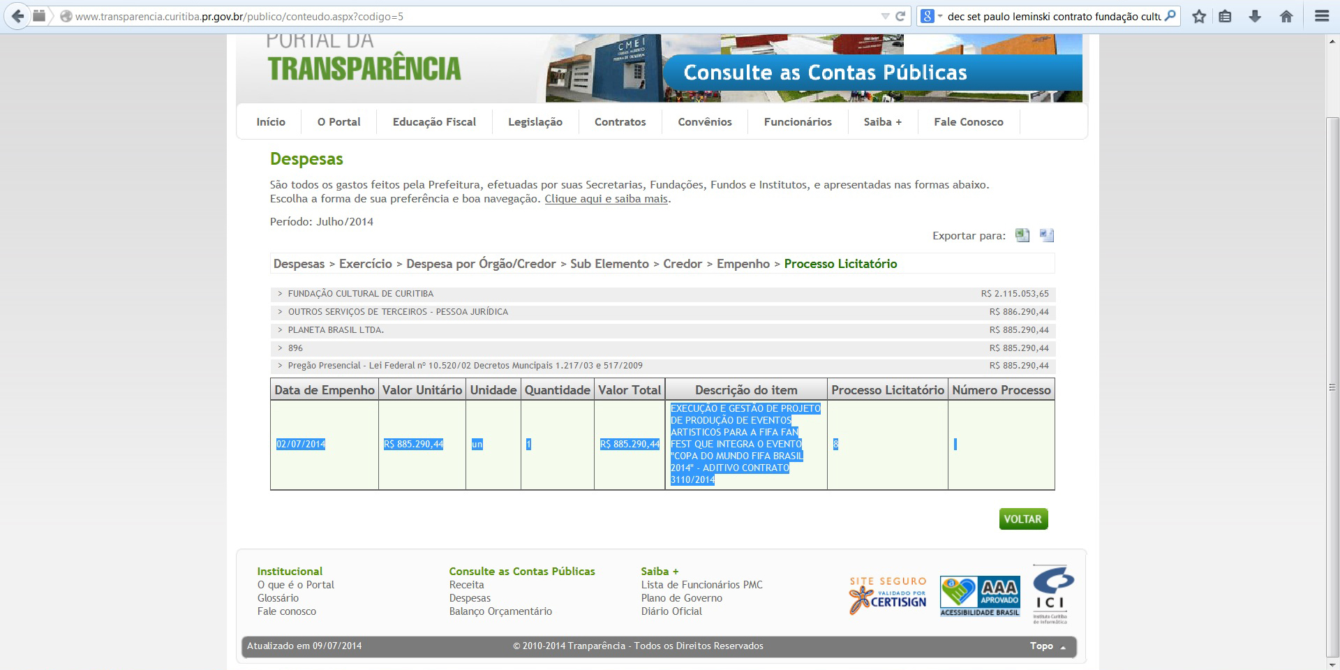 Para promover a Fan Fest da Fifa, a Prefeitura de Curitiba pagou irregularmente mais de R$ 1 milhão para alugar a Pedreira Paulo Leminski. A empresa que administra o local, a DC SET Eventos cobrou dentro do pacote de investimentos da Fifa a locação, contrariando o que está no contrato da concessão firmado pelo prefeito Gustavo Fruet (PDT).