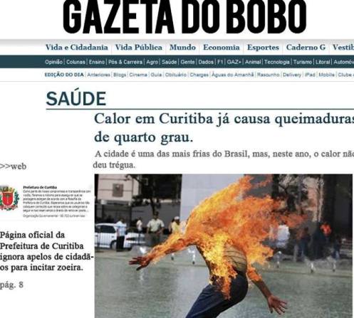 A página da prefeitura de Curitiba nas redes sociais, em especial no Facebook, é só zoação com a grande imprensa e com o momento terrível passado há poucos dias por um cinegrafista da Band. “Calor em Curitiba já provoca queimaduras de quarto grau”, diz a manchete da “Gazeta do Bobo” – página com plágio descarado da Gazeta do Povo. Nos corredores do Palácio 29 de Março a afirmação é que o prefeito Gustavo Fruet (PDT) gostou da piada.